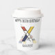 Refined, funny, artistic monogram. Here is the letter "X". Neoplasticism style, or De Stijl, line and colour artistic decoration, the funny bird sits on the letter. The field of art is located under the letter. The template name "XAVIER" is located under the image. The template text "HAPPY 16TH BIRTHDAY" is located over the image. An elegant and unique two sides printed paper cup for anyone. This design is fully customisable. You can change or delete The template name, and you can change the image. If you wish to change fonts, colours, sizes or the whole composition of the design feel free to use the "Edit Design" or "Personalise" (as the case may be) button of the blue colour to further customise it. You will be transferred to the "Design Tool" where you can find fonts, colours, sizes on the right menu; layers, images, geometric elements, backgrounds on the left menu. Just be creative, customise, buy one, enjoy, and be happy!