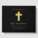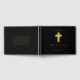 Commemorate the life of a loved one with this elegant foil-accented funeral memorial guest book. Featuring a cross, name, and dates, the design is set against a classic black background with refined gold foil details for a timeless look. Guests can leave messages, memories, and condolences, creating a lasting keepsake for the family. Ideal for memorial services, funerals, and celebrations of life.