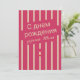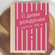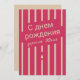 A stunning minimalistic hot pink russian birthday greeting card adorned with beige stripes and a candle. This card can be personalised with the name of the birthday celebrant.