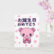 Japanese language birthday card with happy birthday message in Japanese (お誕生日おめでとう, o-tanjoubi omedetou, happy birthday in Japanese) and cute Japanese style illustration. This Japanese greetings card is blank inside for your own message.