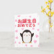 Japanese language birthday card with happy birthday message in Japanese (お誕生日おめでとう, o-tanjoubi omedetou, happy birthday in Japanese) and cute Japanese style illustration. This Japanese greetings card is blank inside for your own message.