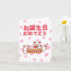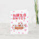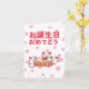 Japanese language birthday card with happy birthday message in Japanese (お誕生日おめでとう, o-tanjoubi omedetou, happy birthday in Japanese) and cute Japanese style illustration. This Japanese greetings card is blank inside for your own message.