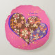 かわいいピンクの鮮やかなお花模様レトロハート♡ ROUND CUSHION