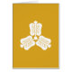 【みつとううちわ】団扇紋 三つ唐団扇は”みつからうちわ”とも呼ばれるが、ここでは「紋典」の呼称に従った。また、伊藤幸作編「日本の紋章」等では軍配団扇紋とし団扇紋とは別にしている。/一名、唐団扇。網代や和紙に漆塗り製のもの、鉄・革製もある。中国より伝来。戦国武将が野戦に用いた指揮具。年中行事・加茂祭等の絵巻物に、この種の団扇が描かれている。軍神・摩利支天の持物であるため、信仰者が兜の前立に使った。(伊藤幸作編「日本の紋章」)