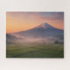 A high-definition puzzle depicting Mount Fuji rising majestically above mist-filled rice paddies at dawn. Gentle morning fog and soft sunrise hues blend to create an ethereal scene rendered in delicate gradations of light and color. Experience the serene beauty of Japan’s iconic mountain and tranquil countryside in this captivating puzzle.