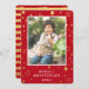 Gold stars and bursts over a red background make for a fun, bold New Year Card! Easy to customise with your own text and photo!