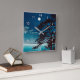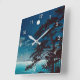 月の二宮海岸, 川瀬巴水 Moon at Ninomiya Beach, Hasui Kawase Square Wall Clock