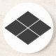 【たけだびし】武田氏代々の家紋。甲斐源氏の祖である新羅三郎源義光が神託により鎧の袖に割菱の紋をあしらったことに由来する。(「戦国武将の「家紋」がよくわかる本」より)/武田信玄(1521~1573)は、清和源氏新羅三郎義光の子義清を祖とする。甲斐の武田荘に住んで武田氏をとなえるようになった。(高橋賢一著「武家の家紋と旗印」)