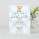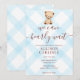 002 Cerulean Blue Teddy Bear Gingham Baby Shower Invitation