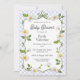 004 Indigo Blue Floral Daisy Plaid Baby Shower Invitation