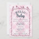 009 Fuchsia Watercolor Gingham Birds Baby Shower Invitation