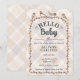 014 Latte Watercolor Gingham Birds Baby Shower Invitation