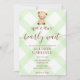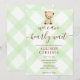 017 Moss Green Teddy Bear Gingham Baby Shower Invitation