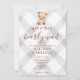 020 Fog Grey Teddy Bear Gingham Baby Shower Invitation