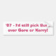 '07 - I'd still pick Bush over Gore or Kerry! Bumper Sticker