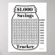 $1000 Savings Tracker Mason Jar Budget Goal Sheet Poster