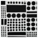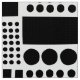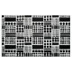An original hand drawn abstract pattern design made up of arrangements of dots in a variety of sizes interspersed with solid rectangles and lines. This pattern uses a vector graphic so can be made larger or smaller. The background colour can also be customised.