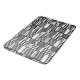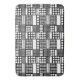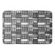 An original hand drawn abstract pattern design made up of arrangements of dots in a variety of sizes interspersed with solid rectangles and lines.