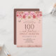 Girly glitter, millennial pink background, with fancy script name typography. Happy 100 and fabulous birthday design template. Pink Roses and butterfly top border. Great for 100th celebrations. Save the date celebration reminder.