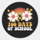 100 Days Of School Flower Rainbow Groovy Retro Classic Round Sticker