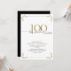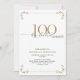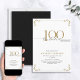 This beautiful invitation features hand lettered calligraphy artfully presenting 'one hundred' in luxurious hand lettering against a white background, adorned with delicate gold swirls in the corners top and bottom. This image will have all your guests excitedly anticipating your fabulous century festivities!