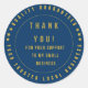 Elevate your business presentation with our Guaranteed Satisfaction,Quality Guaranteed Classic Round Sticker,Thank You round Sticker. This modern thank you sticker features a sleek blur background with gold accents, adding a touch of sophistication to your packaging. Personalise it by adding your website or other details to create unique business box labels. The rich blue and shimmering gold colour scheme exudes luxury and appreciation. Make a lasting impression on your customers with this stylish sticker, emphasising your commitment to satisfaction and quality. Say "Thank You" in style and set your business apart with this exquisite round sticker.