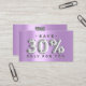 Discount insert business card cart with QR code, discount name.