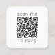 Share one of your engagement or wedding photos and simplify RSVP responses with chic modern QR Code square enclosure cards. Back of card includes any celebration details of your choice such as directions, website, or special requests. The picture and all text are simple to customise, including wording that reads "scan me to rsvp." To make your own QR code using the generator, simply type the website URL into the template. By scanning the card with their phones, guests are sent directly to the wedding website to reply to the invitation. An online rsvp process reduces the chance that cards will be lost in the mail. It's also more versatile, in that you can ask for more detailed information, such as meal choices, food allergies, and song requests. All response information can be personalised or deleted. The black and white design features stylish minimal typography and 1 picture of your choice. This card is an elegant way of asking wedding guests to kindly reply to your upcoming special day celebration.