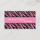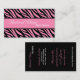 These 100 2x3.5 Sized Light Pink Black Zebra Print Pattern business card is perfect for any business and is completely customisable. It is printed on smooth, matte 88lb white card stock with full colour two sided printing! 100 cards per QTY of 1.