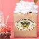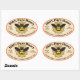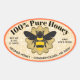 Queen Bee graphic in the center medallion of a colorful sticker, surrounded by a geometric background pattern. Personalize the text with the type of honey, business name, address and net weight of your produce. These stickers fit large, quart and half gallon size mason jars, round and hexagonal glass containers.
