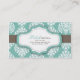 These 100 2x3.5 Sized beautiful Blue Teal Turquoise Damask Lace Print Fabric Leaves Floral Foliage Nature Nail Technician business card is perfect for any business and is completely customisable. It is printed on smooth, matte 88lb white card stock with full colour two sided printing! 100 cards per QTY of 1.