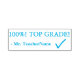 This positive rubber stamp design features the inspiring message "100%! TOP GRADE!" and a customised teacher's, educator's or tutor's name. It also features a decorative check mark. It could be used by a school teacher or educator when marking assignments, to acknowledge that a student has done well.