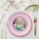 100 Your Photo Random Number Pattern Pink/White Paper Plate