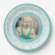 100 Your Photo Random Number Pattern Teal/White Paper Plate