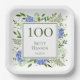 These blue hydrangea 100th birthday party/brunch 9" square paper plates are whimsical and stunning! With their watercolor multi-hued blue hydrangeas, wispy natural greenery they are perfect for celebrating your wife, mum, sister, aunt, friend, grandmother, great grandmother. By selecting Personalise this template and typing in your information you can see your gorgeous plates in seconds!