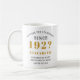 100th birthday mug for those born in the 1920's. The gold and dark grey colours are an elegant classical combination. Easily customise the year, name and sentiment on the chic birthday coffee mug using the template provided. A wonderfully thoughtful gift for him or her. Part of the setting standards range of designs.