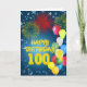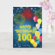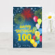 Exploding fireworks light up the sky on this spectacular 100th birthday card. A lot of celebration balloons add to the party feeling . A birthday card suitable for everybody. Copyright Norma Cornes.