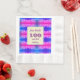 Celebrate a 100th birthday or other milestone birthday with these vibrant, personalised paper lunch napkins which will make clean-up a snap after your celebration. The background features bright blue and neon pink, abstract stripes moving horizontally across this vibrant napkin. A square in the centre provides a solid background for "and still smiling" along with your age and name. All text can be easily personalised to reflect any age and sentiment.