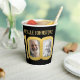 Personalize these modern black and gold 100th birthday party paper cups with your own birthday name and four photographs of your choice in the two 00 of 100. Fun text and personalized photo design. Ideal for using at a centenarian's birthday party to show a photo of your birthday boy or girl now and one from their past. Other matching items are available. © Original graphic art and design by www.mylittleeden.com