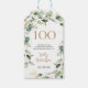 These exquisite, watercolor eucalyptus with gold leaf embellishments and gold splattered dots 100th birthday party thank you tags are perfect for celebrating your mum, wife, sister, aunt, friend, grandmother, great grandmother. Their soft flowy design is modern yet traditional. They'll look fabulous tied onto party favours. Select Personalise this template to make them uniquely your own. In seconds you will see your stunning 100th birthday thank you tags.