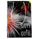 Fireworks in black night sky with clouds and stars for 100th birthday.