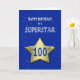 100th birthday card for a superstar. A big gold star carrying the age floats in the heavens. In the background stars twinkle. A great birthday card for someone very special.