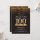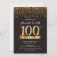 100th Birthday Invitation Black and Gold Glitter