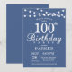 100th Birthday Invitation with String Lights.Blue Background. Men or Women Birthday. 13th 15th 16th 18th 20th 21st 30th 40th 50th 60th 70th 80th 90th 100th, Any age. For further customisation, please click the "Customise it" button and use our design tool to modify this template.