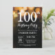 100th Birthday Invitation Gold Glitter
