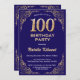 100th Birthday Navy Blue and Gold Glitter Frame Invitation
