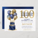 100th Birthday Navy Blue Balloon Cake Invitation