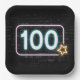 100th Birthday Neon Sign On Brick Paper Plate