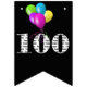 Bold 100 number in white on black background with party balloon bouquet for 100th birthday celebration