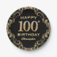 100th Birthday Party Black and Gold Glitter Frame Paper Plate